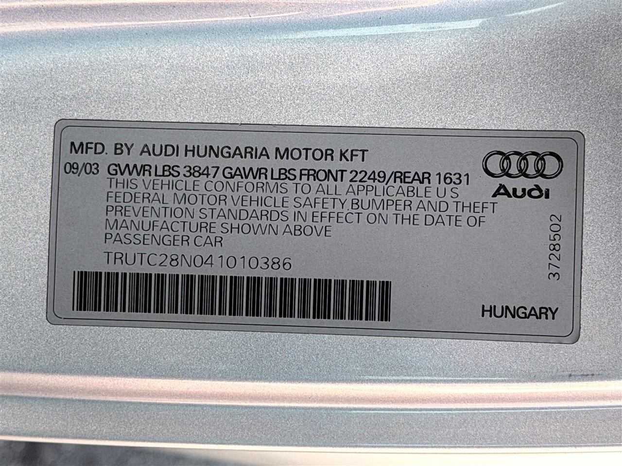 2004 Audi TT 1.8T Roadster FrontTrak
