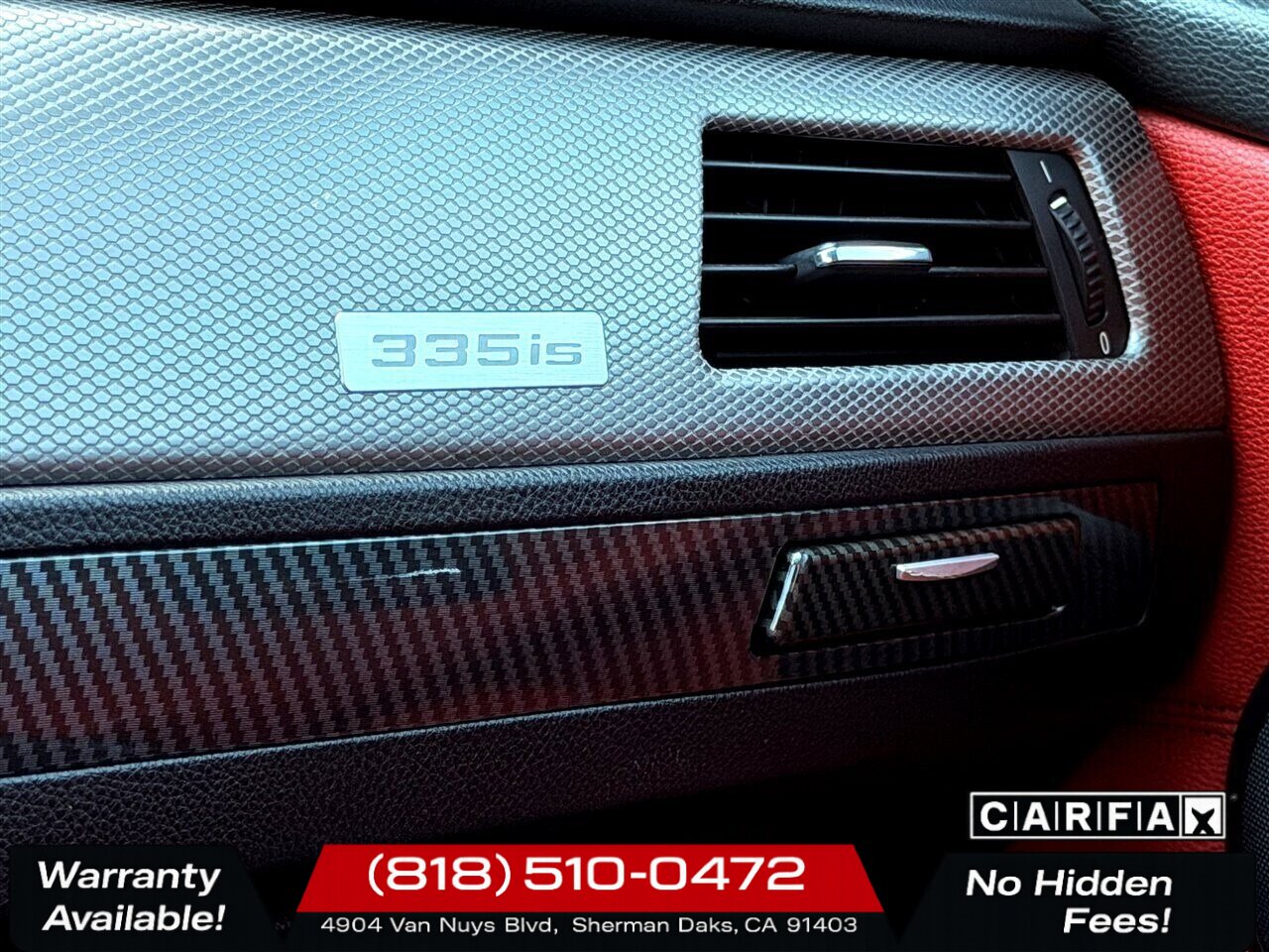2012 BMW 335is — Black Sapphire Metallic with Coral Red/Black Dakota leather. This performance-focused six-cylinder BMW pairs the potent 3.0L Twin-Turbo inline-6 (320 hp, 332 lb-ft) with a chassis tuned for confident, engaging driving. Well-maintained and in excellent overall condition, this example has under 115,000 miles (averaging less than 8,000 miles per year) and a clean CARFAX. EPA fuel economy is 18 MPG city / 26 MPG highway.