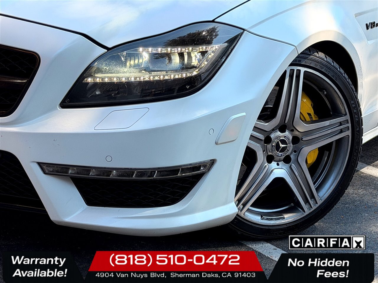 2012 Mercedes-Benz CLS 63 AMG — Matte White exterior, Black interior. Exceptionally well-maintained with under 83,000 miles (averaging less than 6,000 miles per year). Clean CARFAX. Excellent overall condition. EPA: 16 MPG city / 25 MPG highway. Powertrain: 5.5L Twin-Turbo V8 producing 518 hp and 516 lb-ft of torque, paired with the AMG SpeedShift MCT 7-speed transmission and rear-wheel drive for immediate, linear response and authoritative passing power.