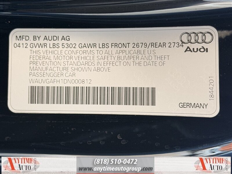 2013 Audi S5 3.0T quattro Prestige — Brilliant Black exterior, Black leather interior. Exceptionally clean example with under 89,000 miles (averaging less than 7,000 miles per year) and excellent overall condition. Fuel economy is an efficient 18 MPG city / 26 MPG highway.
