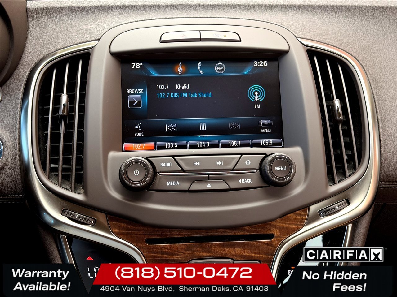 - Buick IntelliLink infotainment interface with a clear color display