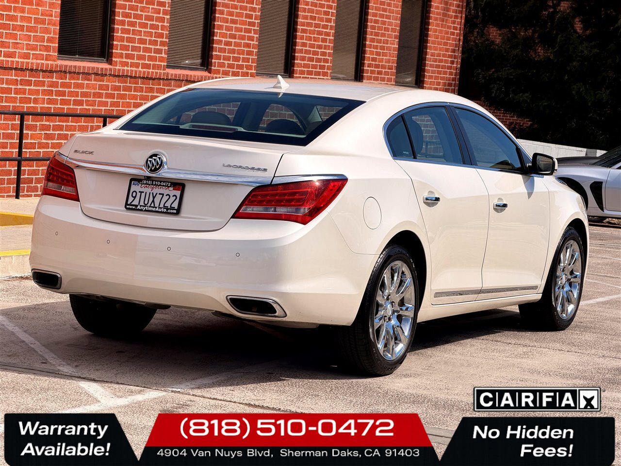 Immaculate example of Buick’s comfortable, refined flagship sedan. Powered by the robust 3.6L V6 producing 304 hp and 264 lb-ft of torque, mated to a smooth-shifting automatic transmission and front-wheel drive. This LaCrosse delivers confident acceleration, composed highway cruising and a strong real-world economy of approximately 18 MPG city / 28 MPG highway. With under 84,000 miles (averaging less than 7,000 miles per year), this vehicle shows light, owner-careful use and is in excellent overall condition. Clean CARFAX.