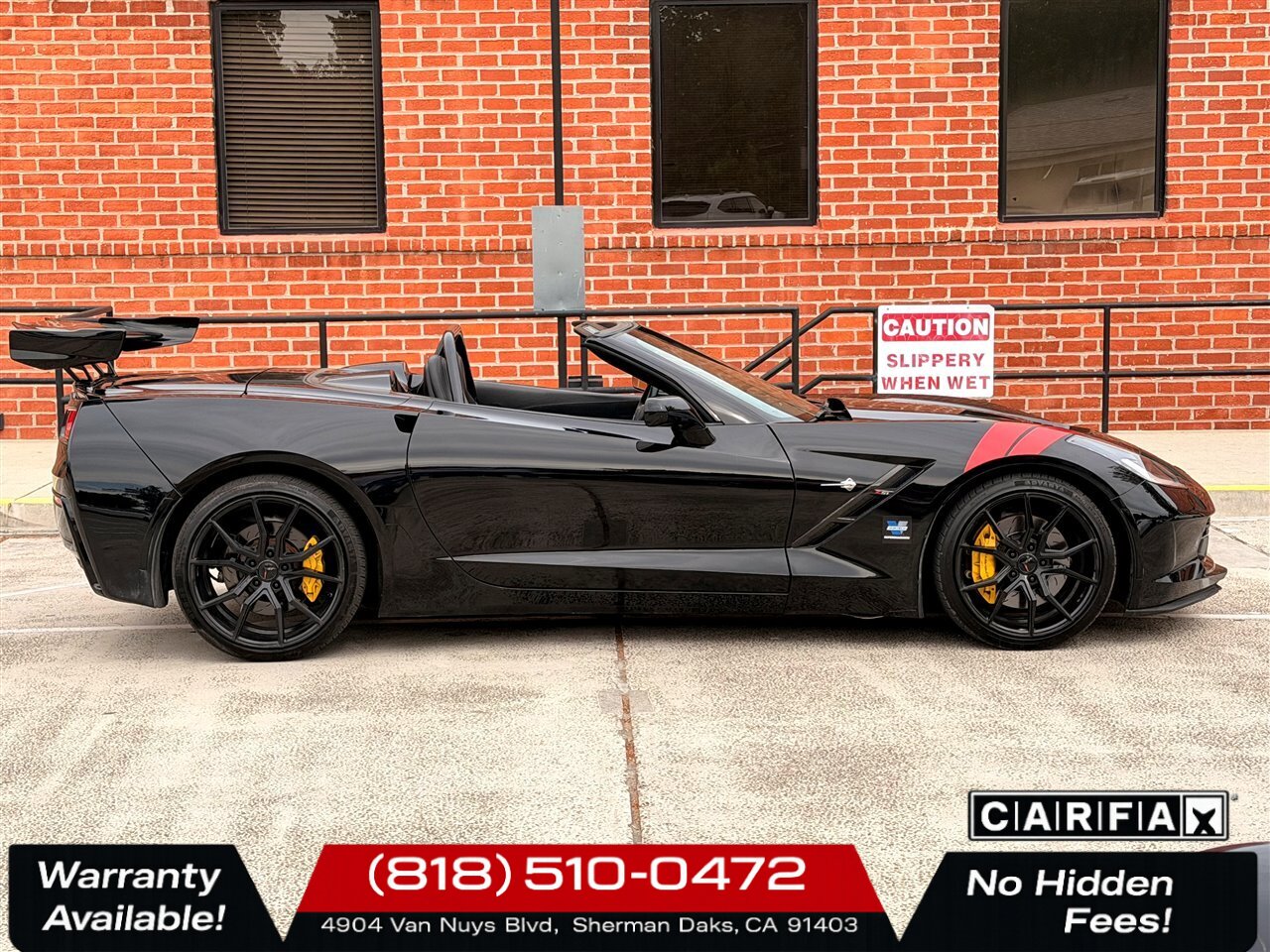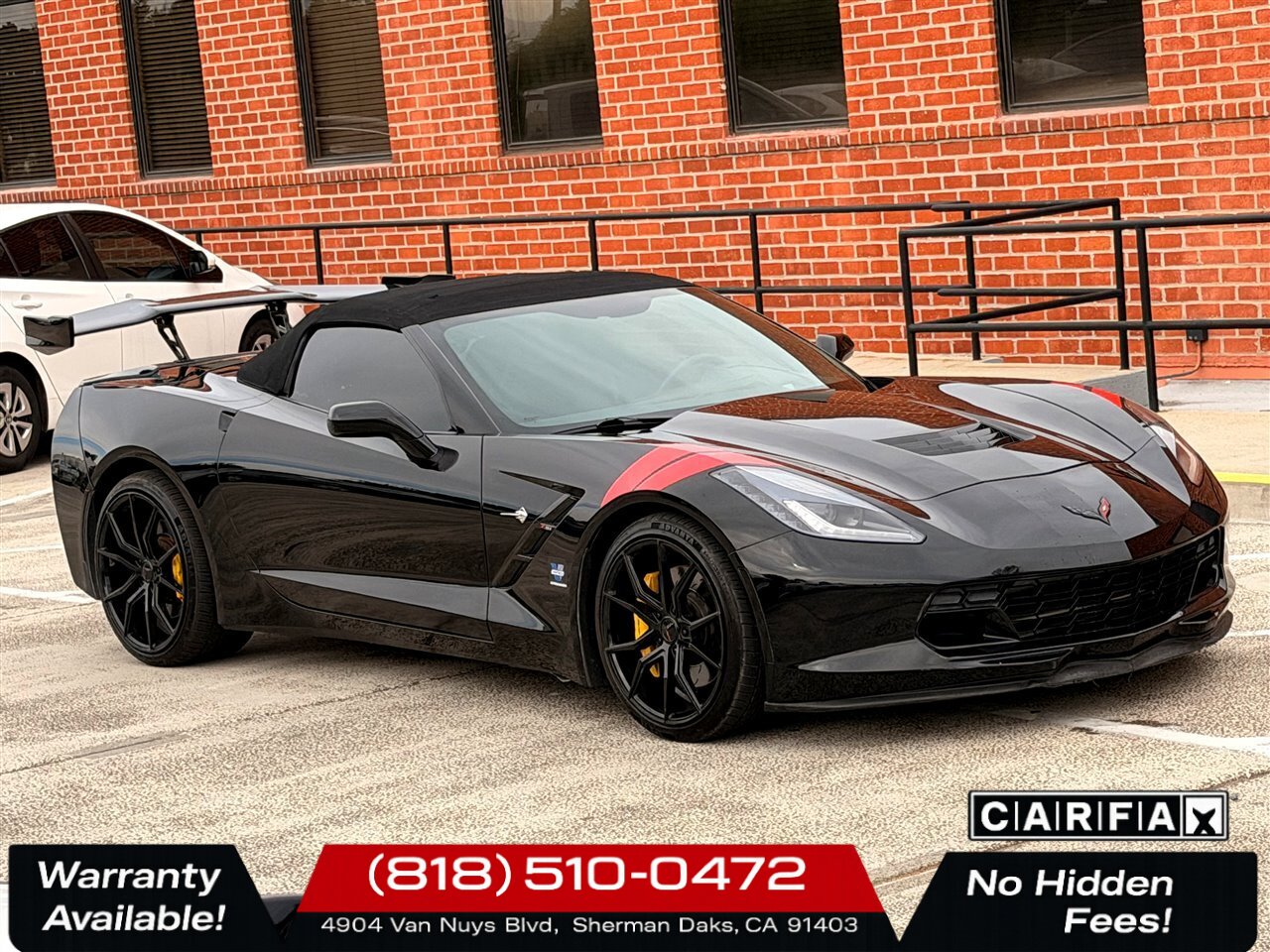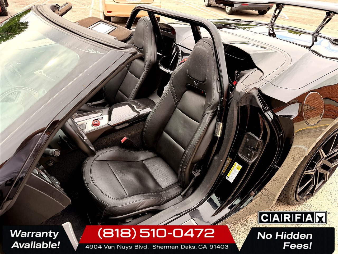 2014 Chevrolet Corvette Stingray Z51 — Black exterior with Jet Black leather interior. Powered by the potent 6.2L V8 producing 455 hp and 460 lb-ft of torque, this Stingray delivers exhilarating performance while remaining refined for everyday driving. The included Z51 performance enhancements and upgraded options — Black Z51-style aluminum wheels with striking Yellow brake calipers — give this Corvette an aggressive, track-ready stance and enhanced stopping capability.