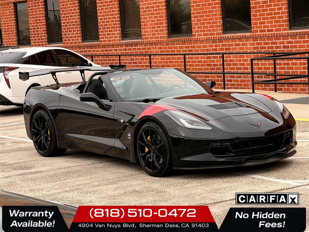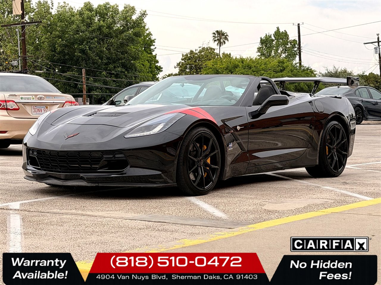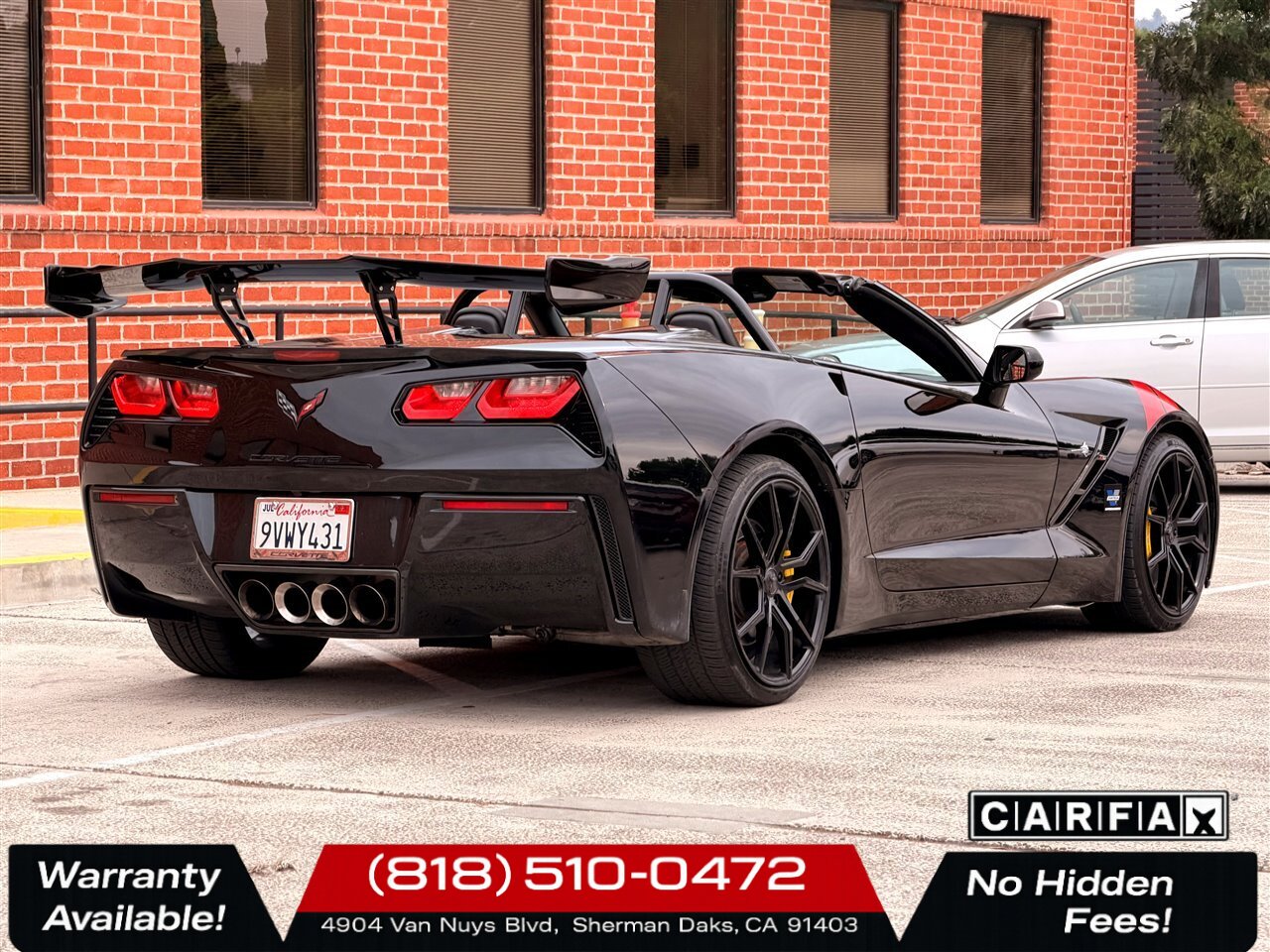 2014 Chevrolet Corvette Stingray Z51 — Black exterior with Jet Black leather interior. Powered by the potent 6.2L V8 producing 455 hp and 460 lb-ft of torque, this Stingray delivers exhilarating performance while remaining refined for everyday driving. The included Z51 performance enhancements and upgraded options — Black Z51-style aluminum wheels with striking Yellow brake calipers — give this Corvette an aggressive, track-ready stance and enhanced stopping capability.