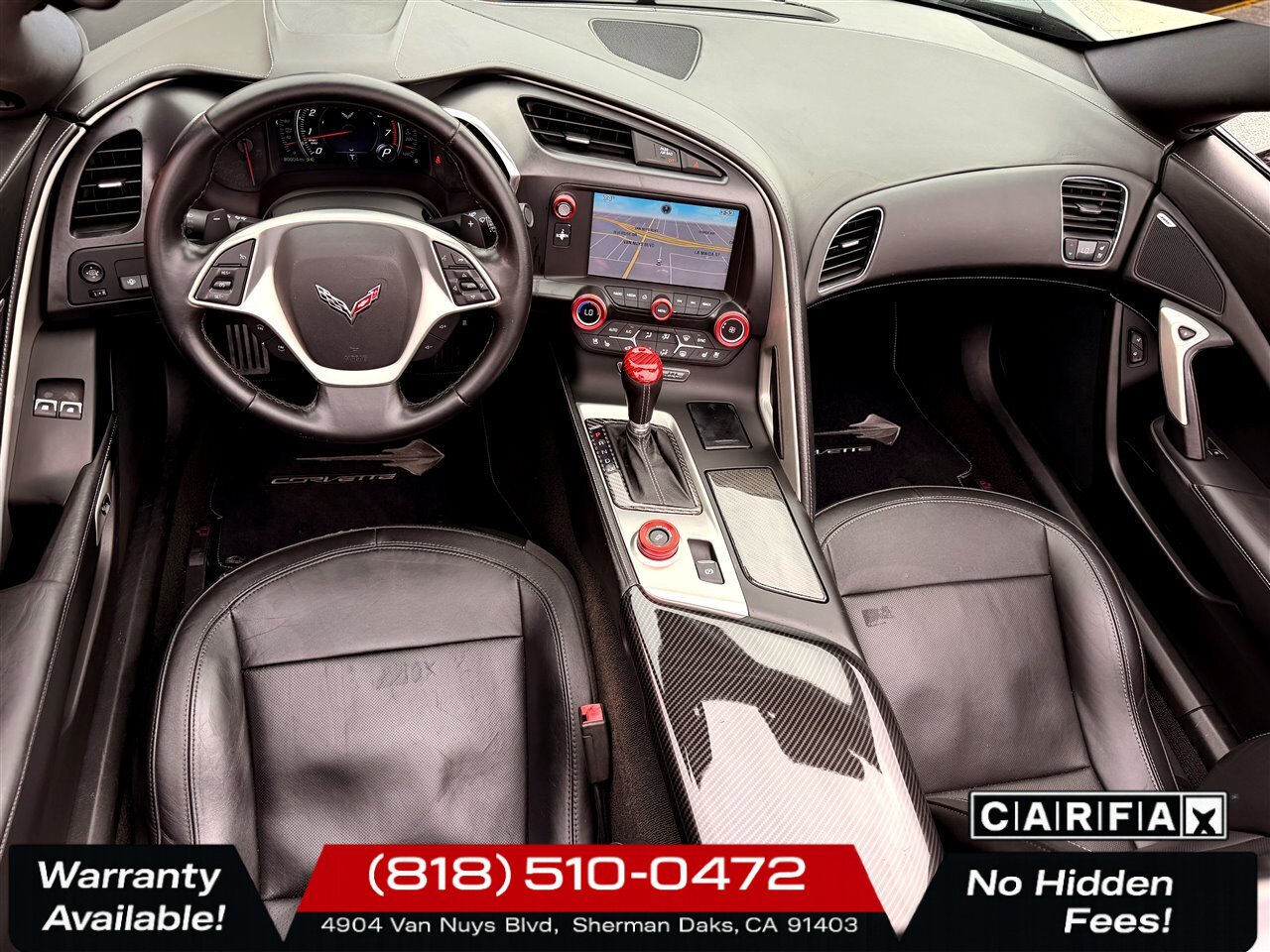 - Conveniences and comfort features expected from the Stingray: power-adjustable leather seats, steering-wheel-mounted controls, dual-zone climate control, power windows and locks, cruise control, and a modern infotainment system with available Bluetooth audio/phone integration.