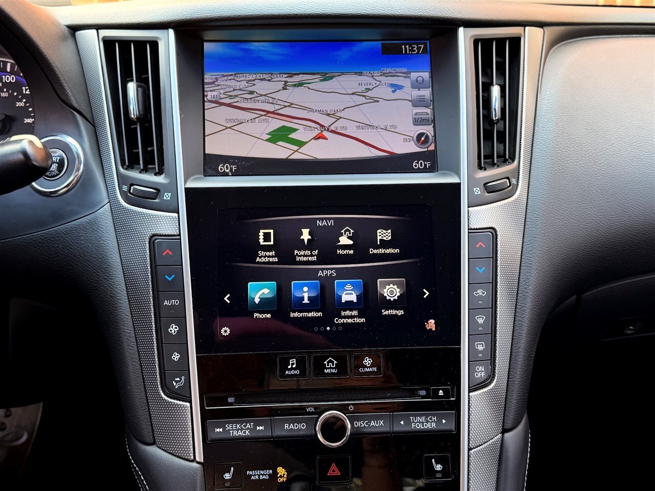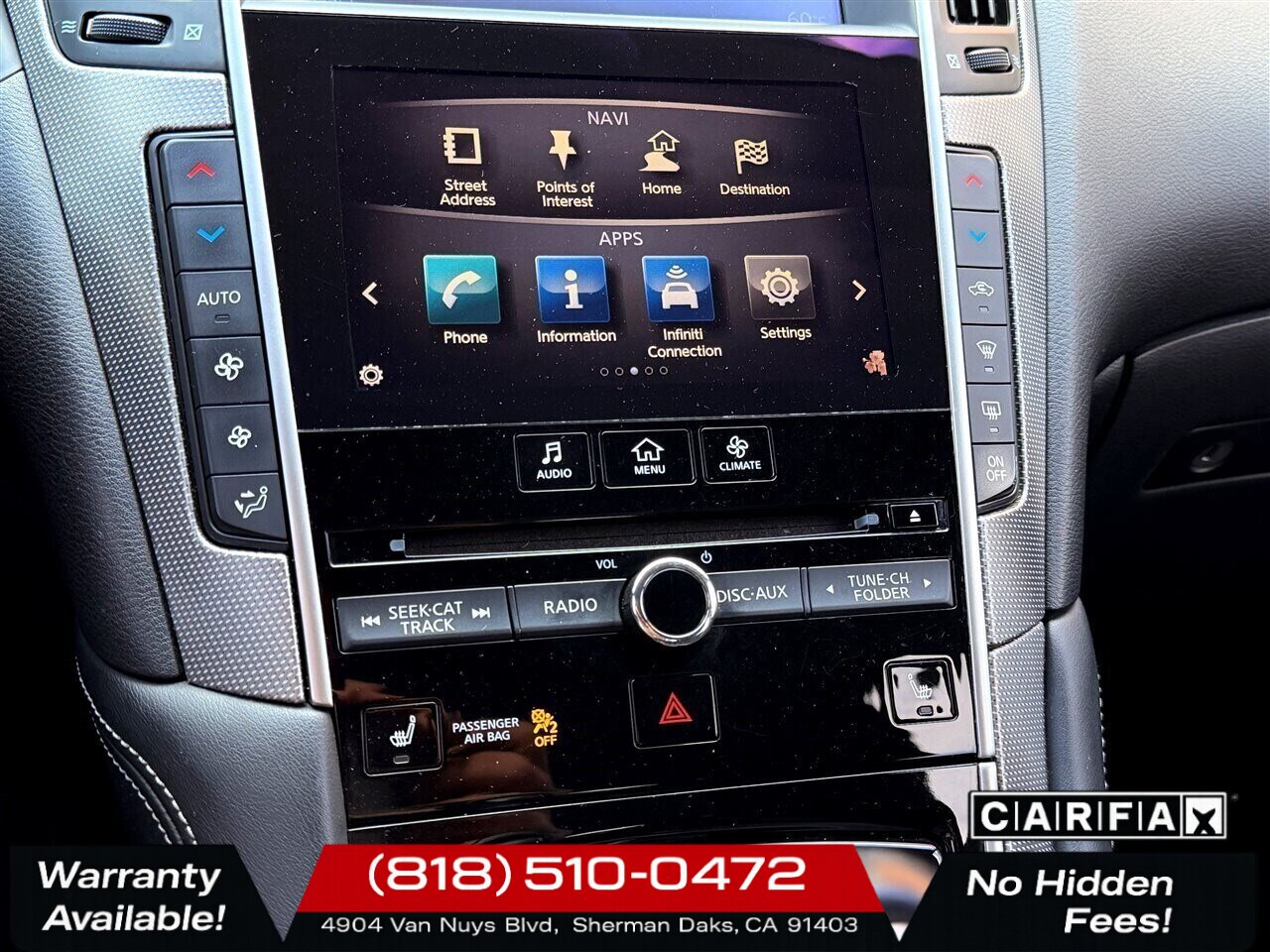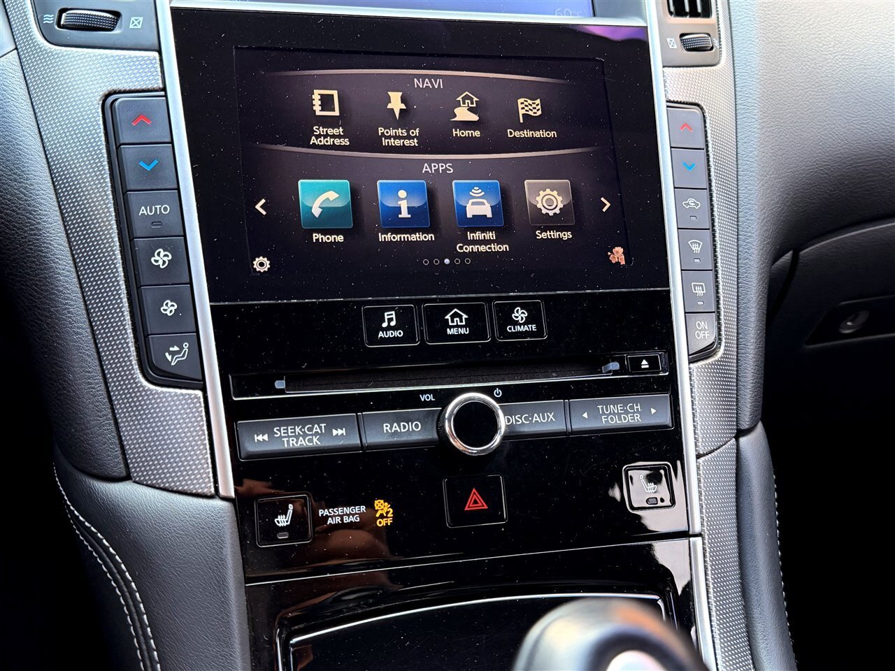- Navigation Package: factory hard-drive navigation with voice guidance and route guidance, integrated through the Infiniti InTouch interface for clear mapping and points-of-interest routing.