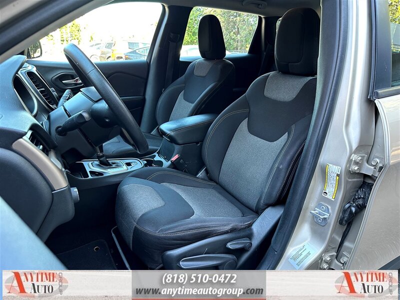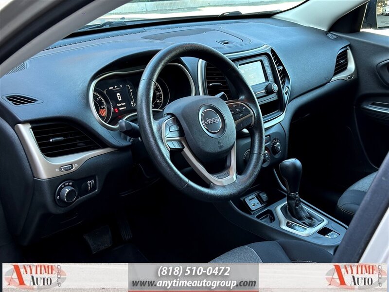 This 2015 Jeep Cherokee Sport comes equipped with a powerful 2.4L I4 engine producing 180hp and 171ft. lbs. of torque. The exterior is coated in a stylish Cashmere Pearl Coat, complemented by a sleek Black interior. This vehicle boasts a fuel-efficient performance, achieving 22 MPG in the city and an impressive 31 MPG on the highway. In excellent overall condition, this Cherokee Sport offers a range of factory default features designed to enhance both comfort and convenience for drivers and passengers alike.
