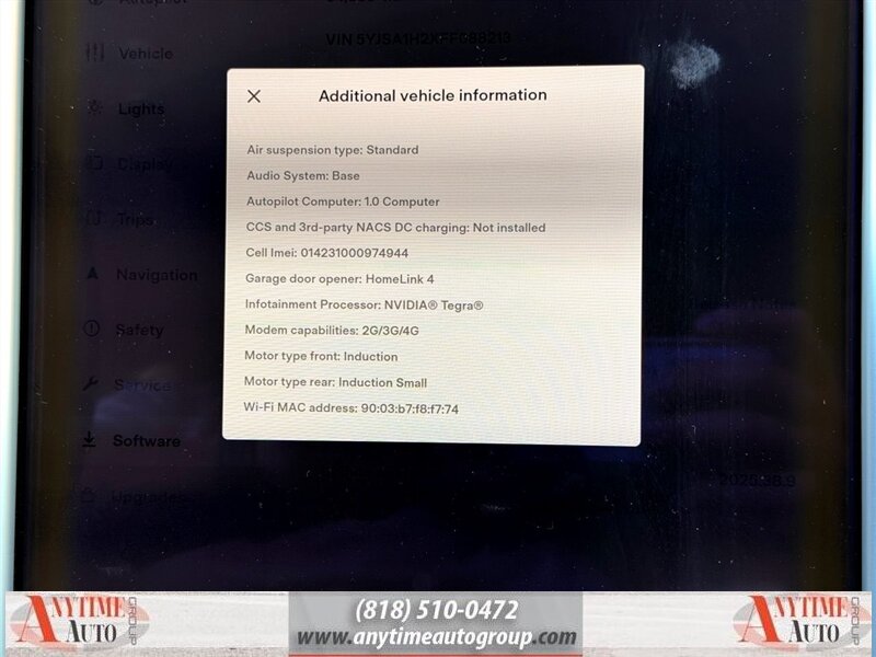 Standard factory features of the 2015 Tesla Model S 85D include a 17-inch touchscreen display that serves as the central hub for vehicle controls and infotainment, enabling seamless connectivity and access to navigation, music, and vehicle settings. Additionally, the vehicle is equipped with advanced safety features, including a suite of airbags, stability control, and traction control, ensuring peace of mind for both driver and passengers.