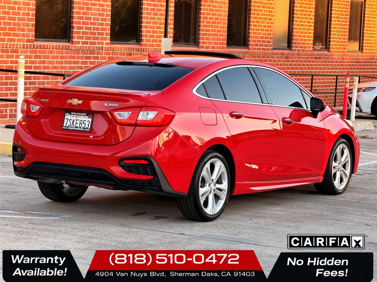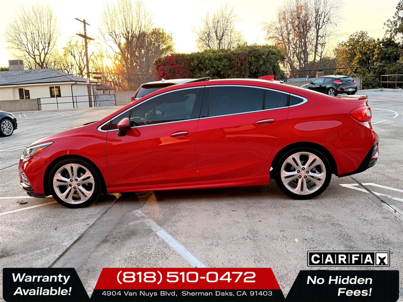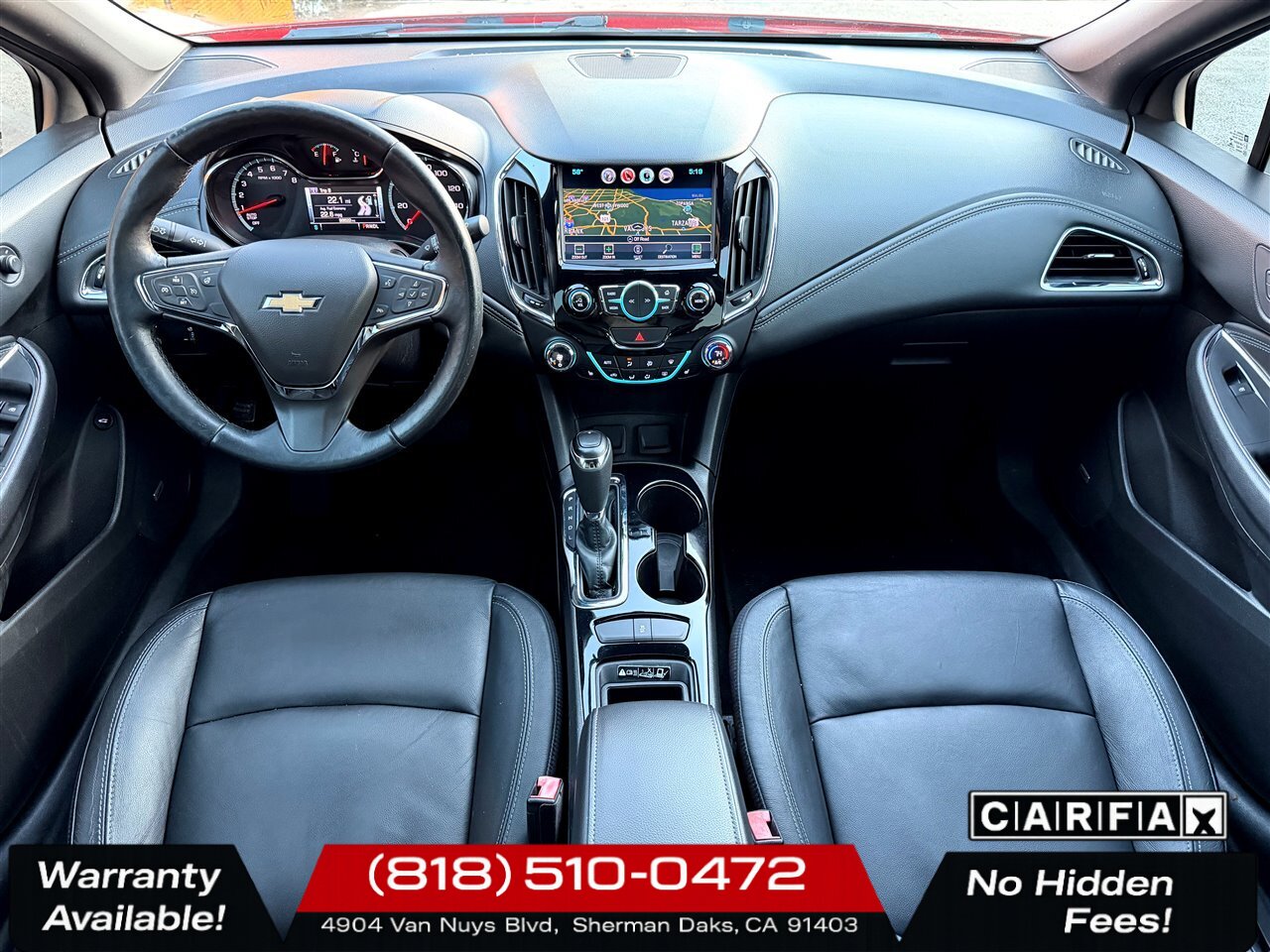 This 2016 Chevrolet Cruze Premier blends turbocharged efficiency, premium convenience features, and sporty RS styling — all presented in a striking Red Hot exterior with a Jet Black leather-appointed interior. With desirable factory packages (Sun, Sound & Navigation and RS), low miles, a clean CARFAX, and excellent condition, it’s a great choice for drivers seeking a refined compact sedan with real-world efficiency and comfort. Contact us to schedule a test drive or to learn more about this exceptional Cruze.