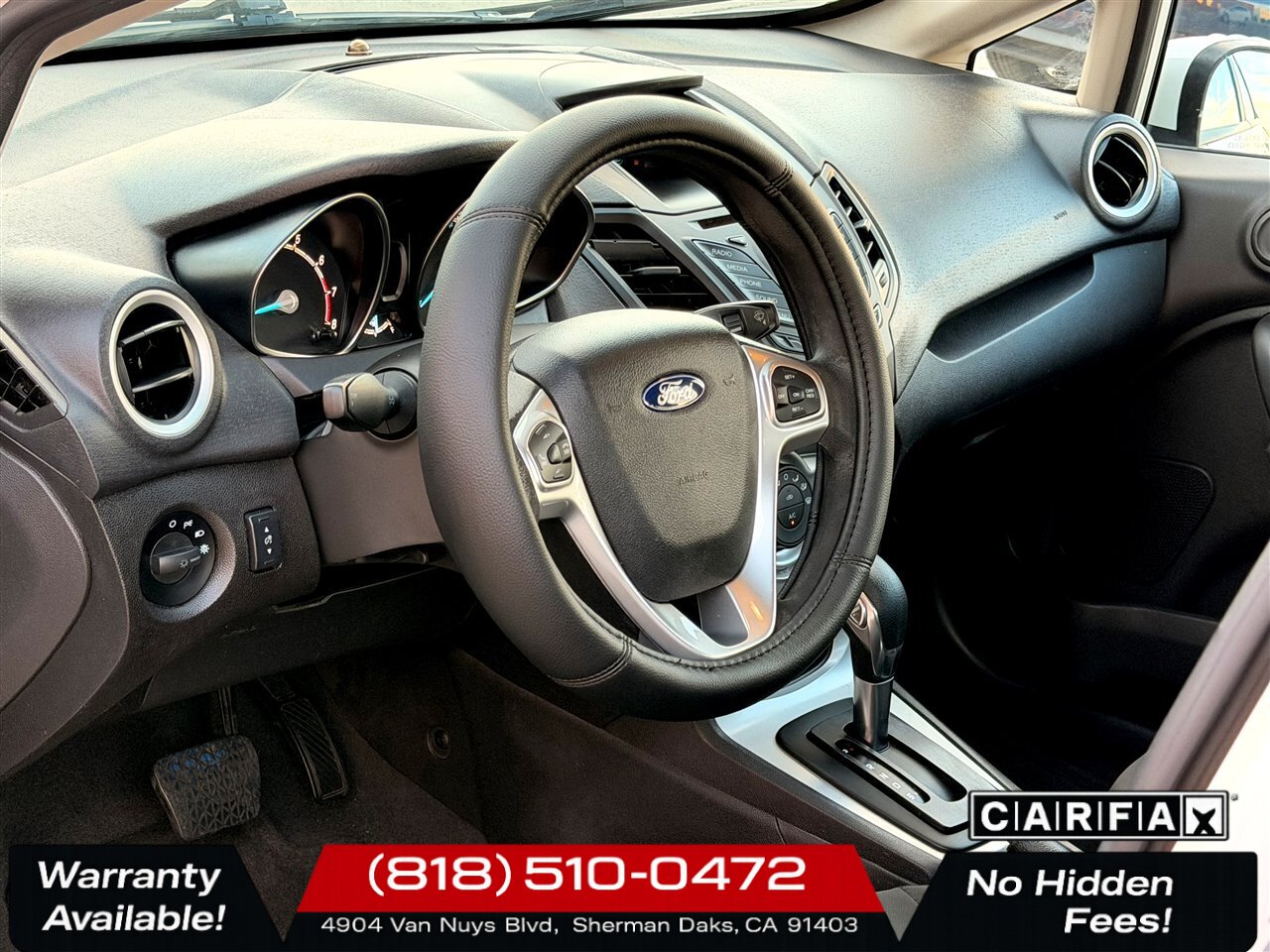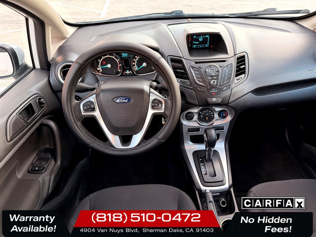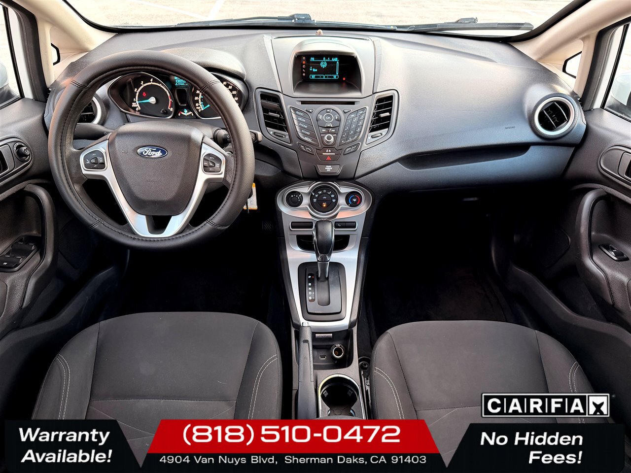 2017 Ford Fiesta SE — Oxford White exterior with Charcoal Black cloth interior. This well-maintained subcompact offers an efficient and engaging driving experience powered by a 1.6L I4 engine producing 120 hp and 112 ft-lbs of torque. Excellent overall condition with a clean CARFAX report. EPA-estimated fuel economy is 27 MPG city and 35 MPG highway, making this Fiesta an economical choice for daily commuting and highway travel.