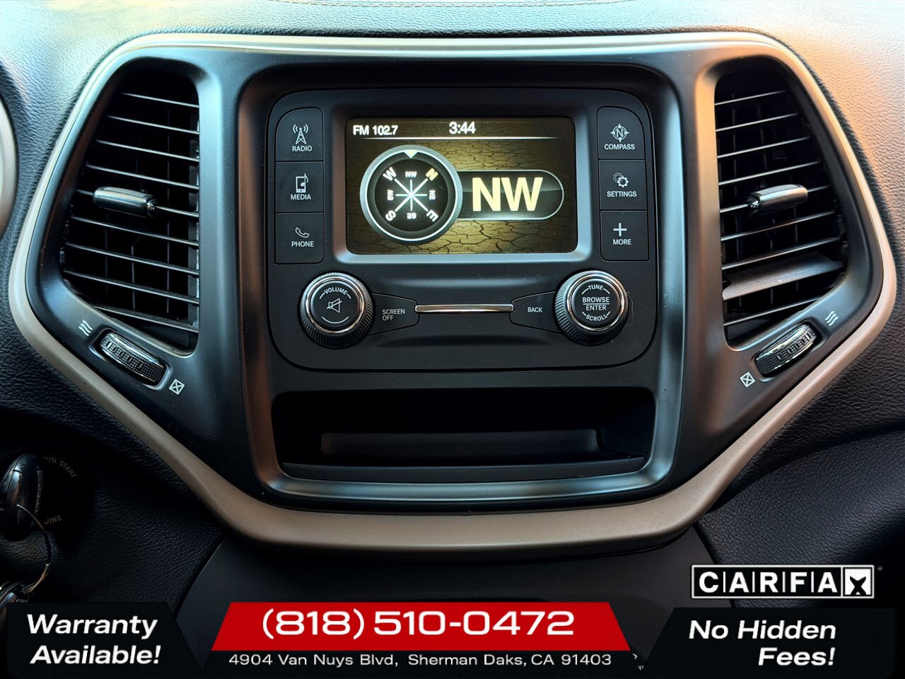 - Uconnect infotainment system (factory-installed) offering AM/FM radio, Bluetooth hands-free phone and audio streaming, and USB/AUX inputs for device connectivity.