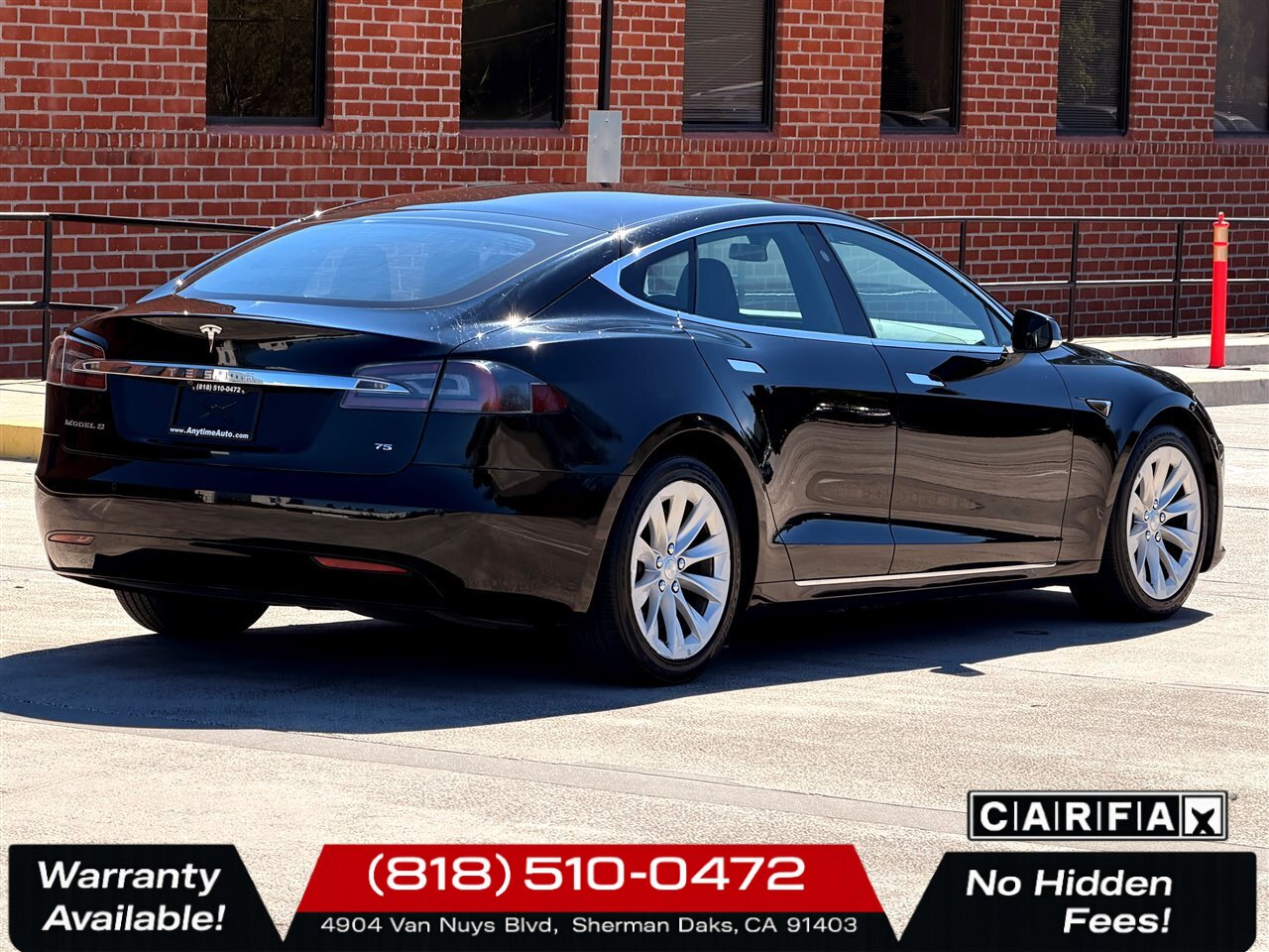 2017 Tesla Model S 75 — Solid Black exterior with Black cloth interior. This all-electric sedan delivers smooth, responsive performance from its electric powertrain producing 382 hp and 325 ft·lbs of torque, providing immediate torque and quiet, efficient operation. The vehicle includes the desirable Glass Roof option and presents in excellent overall condition with a clean CARFAX. Mileage is under 81,000 miles, averaging less than 9,000 miles per year.