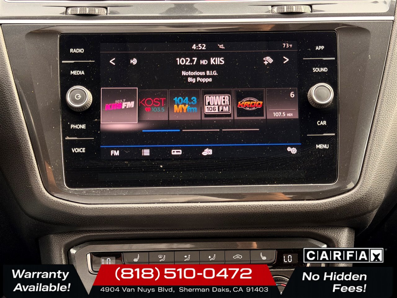 - Radio: AM/FM, HD radio, touch screen display, voice operated