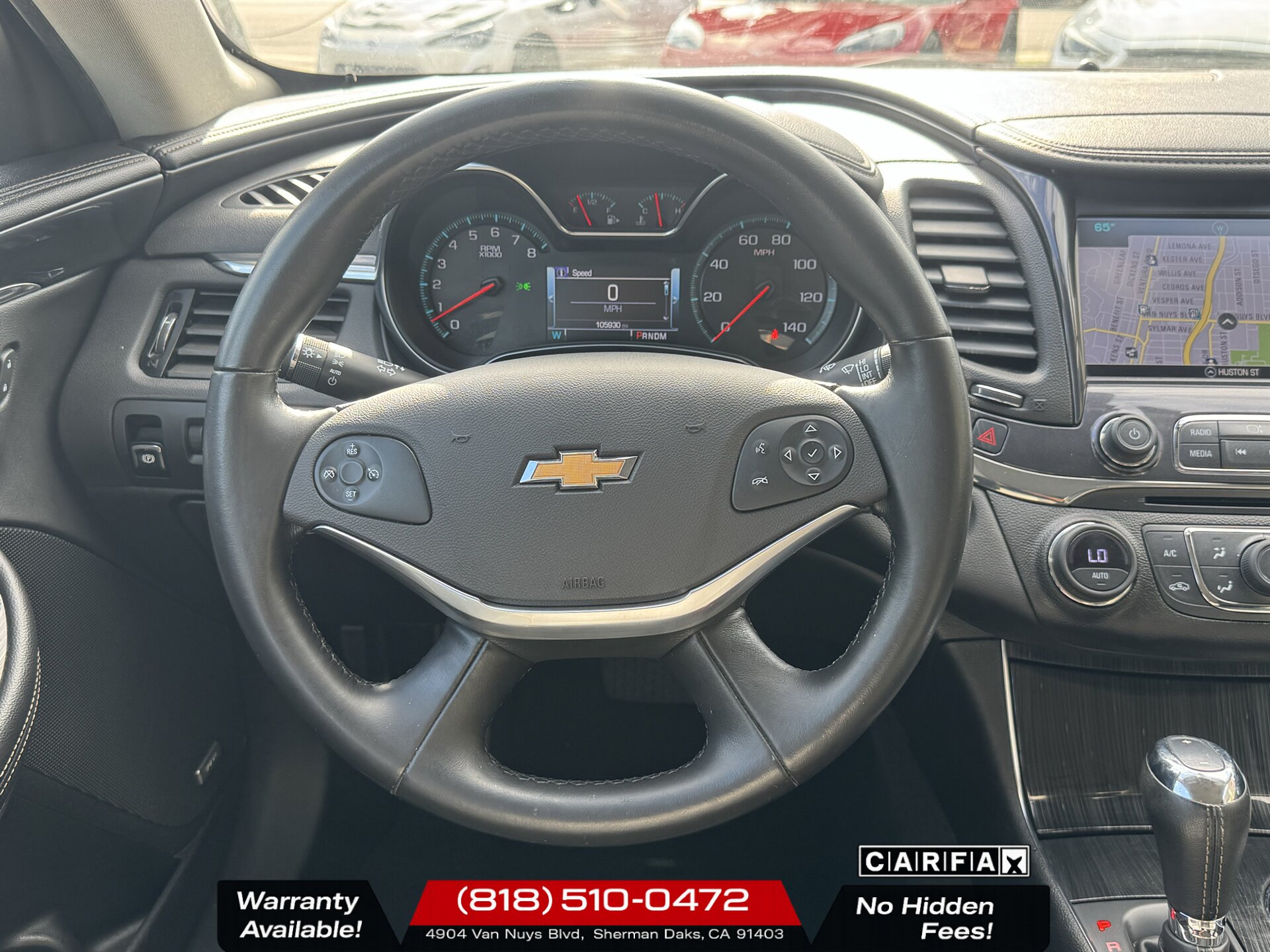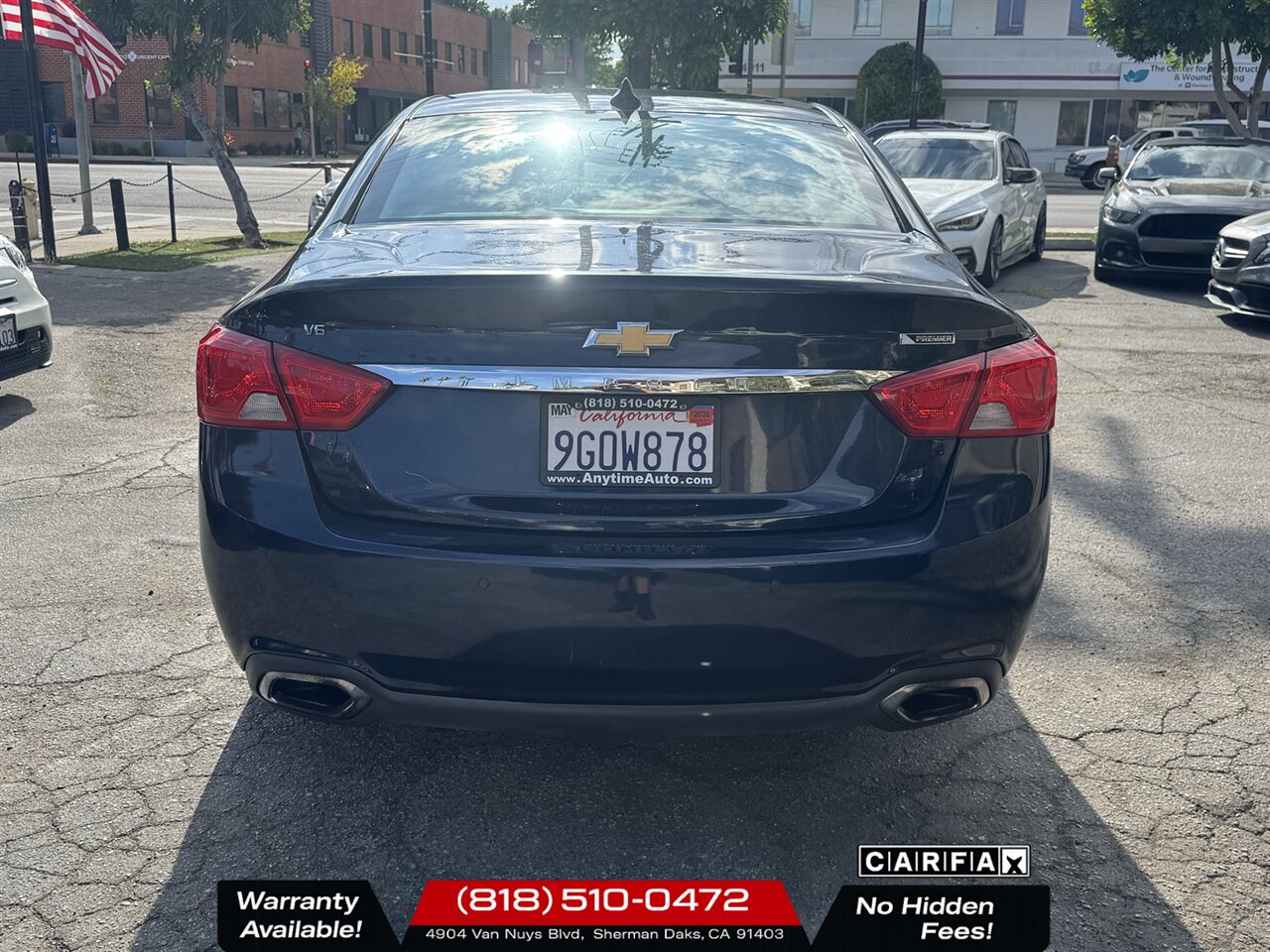 2019 Chevrolet Impala Premier — Mosaic Black Metallic exterior with Jet Black interior. Powered by a 3.6L Flex Fuel V6 producing 305 hp and 264 lb-ft of torque, this Premier is in excellent overall condition and comes with a clean CARFAX report.