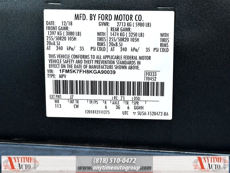 Introducing the 2019 Ford Explorer Limited, a versatile SUV designed to meet all your needs on the road. Under the hood, this vehicle is powered by an EcoBoost 2.3L Turbo I4 280hp 310ft. lbs. engine, delivering a smooth and powerful performance on the road. The vehicle comes equipped with the Luxury Package and Safe and Smart Package, providing drivers and passengers with a range of advanced features.