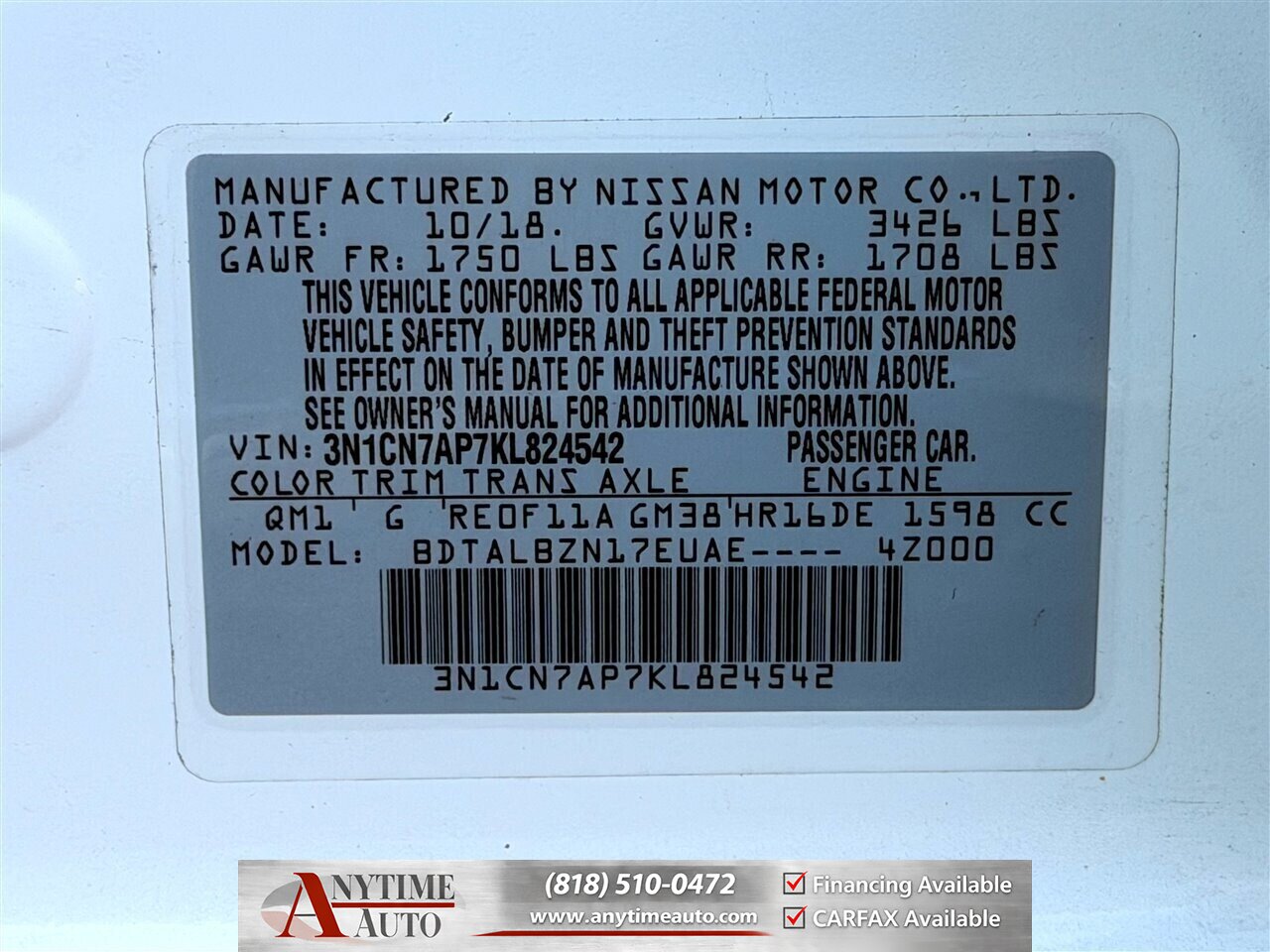 3N1CN7AP7KL824542