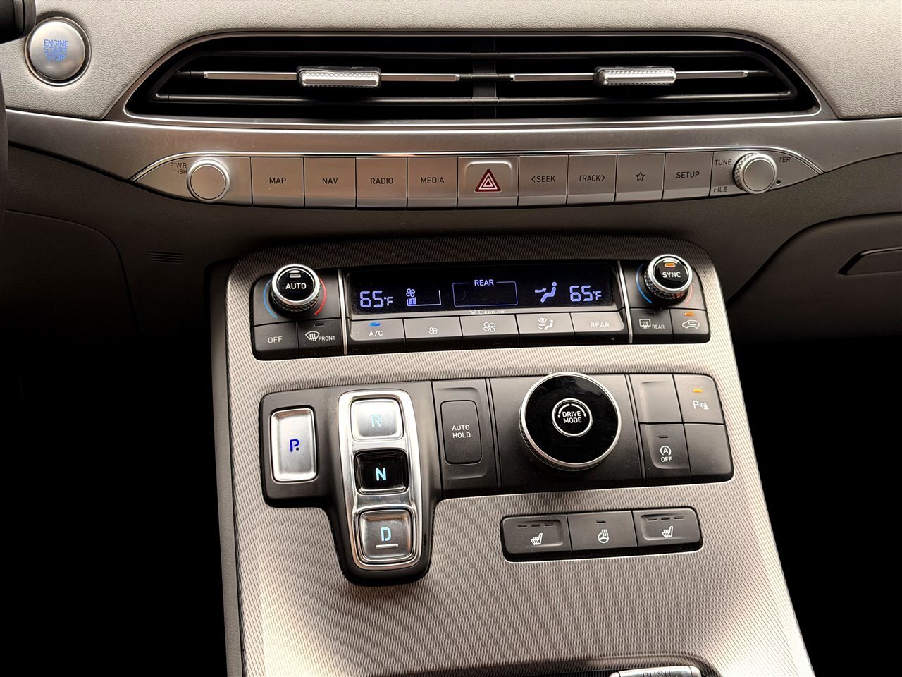 - Seating & interior comfort: Configured for eight passengers with a factory-installed 3-row layout. Gray leather upholstery provides a refined cabin feel. Driver ergonomics include power-adjustable seating and supportive front seats designed for long-distance comfort. Tri-zone automatic climate control keeps driver, front passenger and rear passengers comfortable with independent temperature settings.