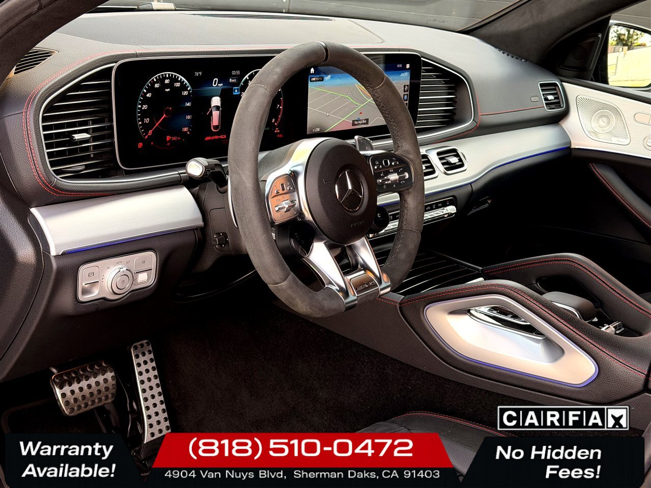 - Interior & Comfort: AMG sport seats with power adjustments and memory, multi-level ambient lighting, premium trim with Red contrast stitching, heated front seats (factory-standard on AMG models varies by market), power tailgate and substantial storage and cargo flexibility.